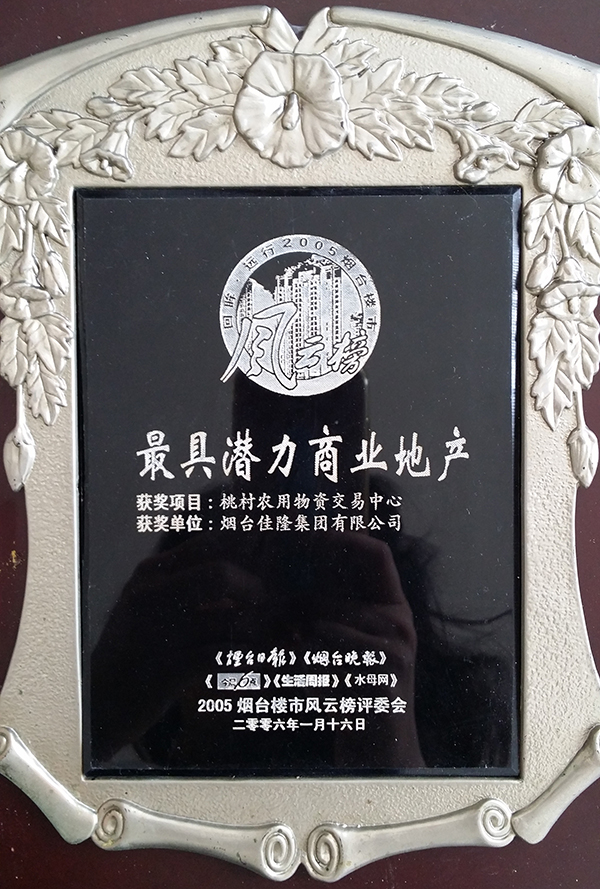煙臺桃村農(nóng)用物資交易中心是由煙臺佳隆集團開發(fā),項目總建筑面積15萬平方米,總投資2.5億元,分為兩期建設(shè),包括商業(yè)中心、會展中心、倉儲中心、綜合大樓等設(shè)施,被省市鎮(zhèn)三級政府列為重點開發(fā)項目,公司共計員工五十多人。一期5.4萬平方米的商業(yè)中心已經(jīng)建成并投入使用,共擁有獨立產(chǎn)權(quán)商鋪435套,市場內(nèi)設(shè)有化肥、農(nóng)藥、獸藥、種子、農(nóng)機及配件、五金交電、日用雜品、農(nóng)用地膜、餐飲、娛樂、賓館等多個功能區(qū),是膠東半島唯一、山東省最大的農(nóng)用物資集散地,填補了膠東半島無大型農(nóng)用物資市場的空白。該項目榮獲煙臺市“最具潛力商業(yè)地產(chǎn)”獎項。